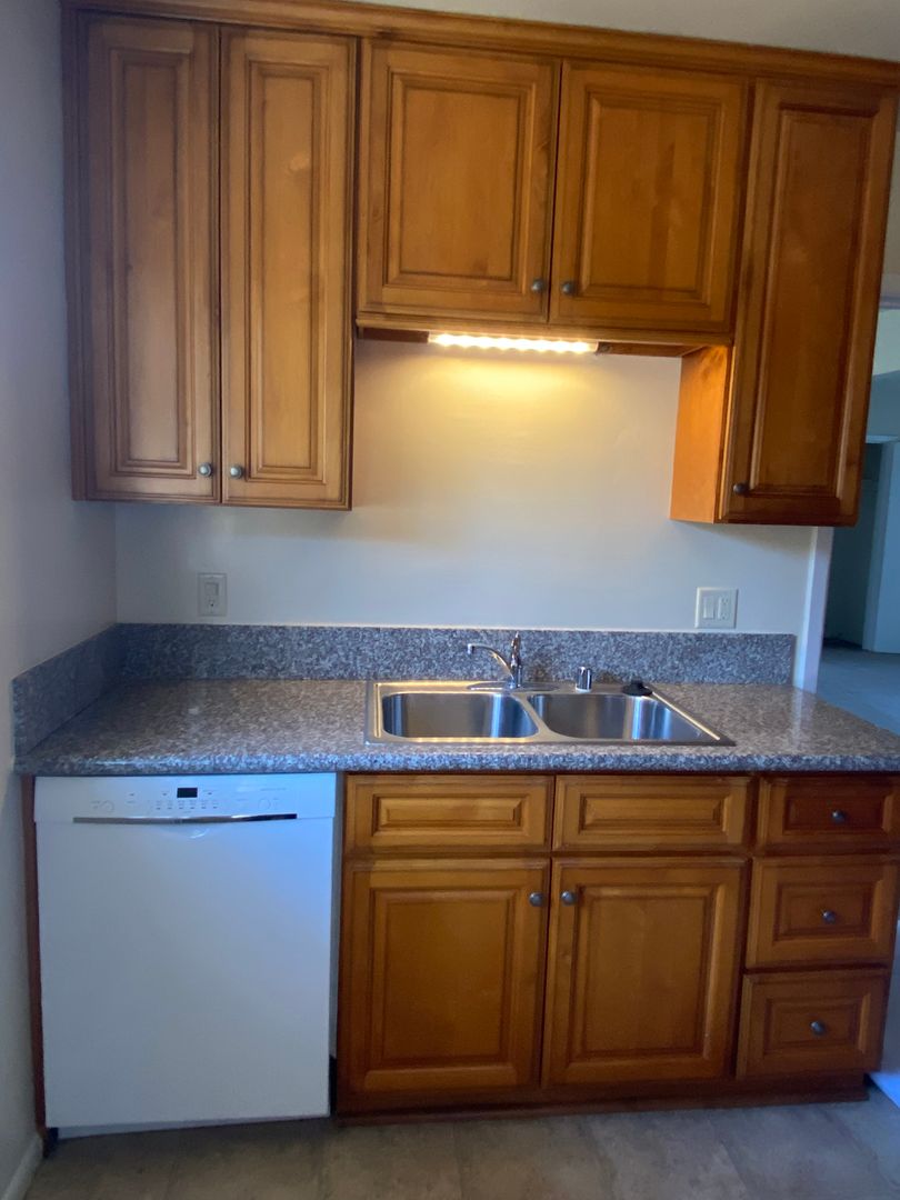 Updated kitchen with granite counters and cabinets.