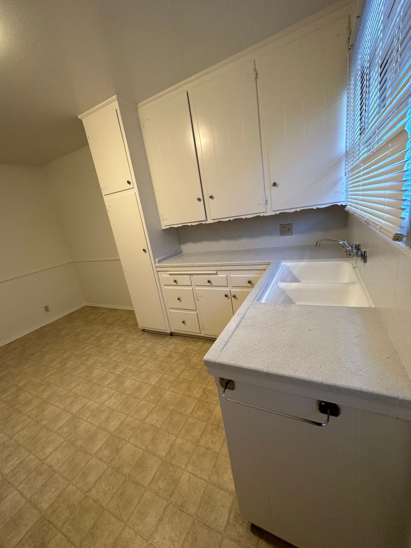 This two bedroom one bath includes wooden floors and linoleum floors, Stove, Ceiling fans and a Wall Heater. It's located in a quiet neighborhood. Kitchen tile countertops, stove, new paint. Comes with 1 parking space.
